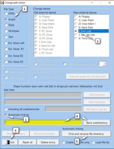Wenn Sie die Verzeichnisse verwendeter externer Dateien wie Style, MIDI usw. umbenennen, müssen Sie die jeweiligen Verlinkungen in den Registrationen entsprechend anpassen. Dies kann nun mit der neuen Funktion im Batch-Mode automatisch durchgeführt werden. Auch eine Umstrukturierung Ihrer Verzeichnisse um „SongList“ zu verwenden, ist hiermit sehr einfach möglich.
